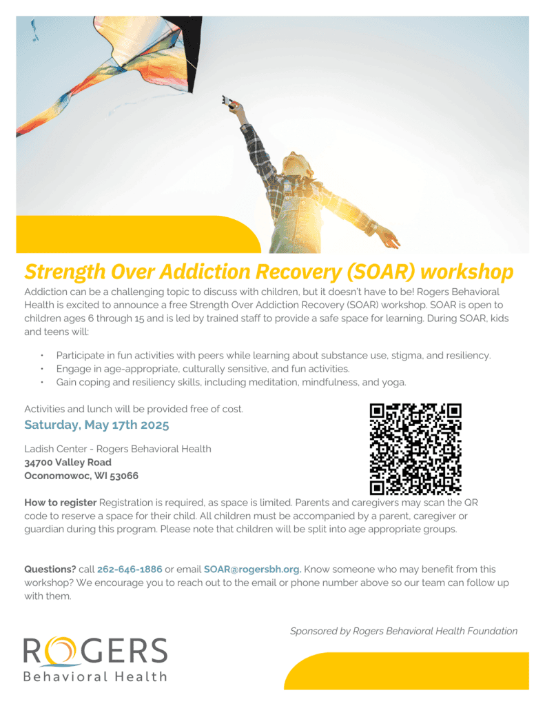 To register for the event, a guardian must fill out a form by scanning the QR code in the flyer below, or they can email SOAR@rogersbh.org. If technology is a barrier, the guardian can also call 262-646-1866 to complete the registration.