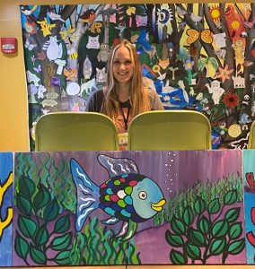 “I was asked by my leader, Deana Grall, manager of experiential therapy, to paint The Rainbow Fish book by Marcus Pfister,” explains Lacie.